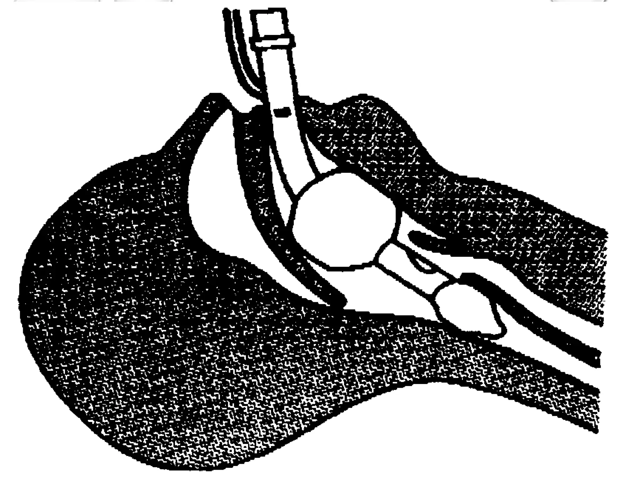 • INSERT TUBE THROUGH LARYNX UNDER DIRECT VISION