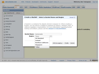 www.tamagawaken.comとい うS3のバケットを作る 今回は、Route 53を、 Google Spreadから使うツー ルを利用 参照: http://webos-goodies.jp/archives/manage_amazon_route_53_using_google_apps_script.html