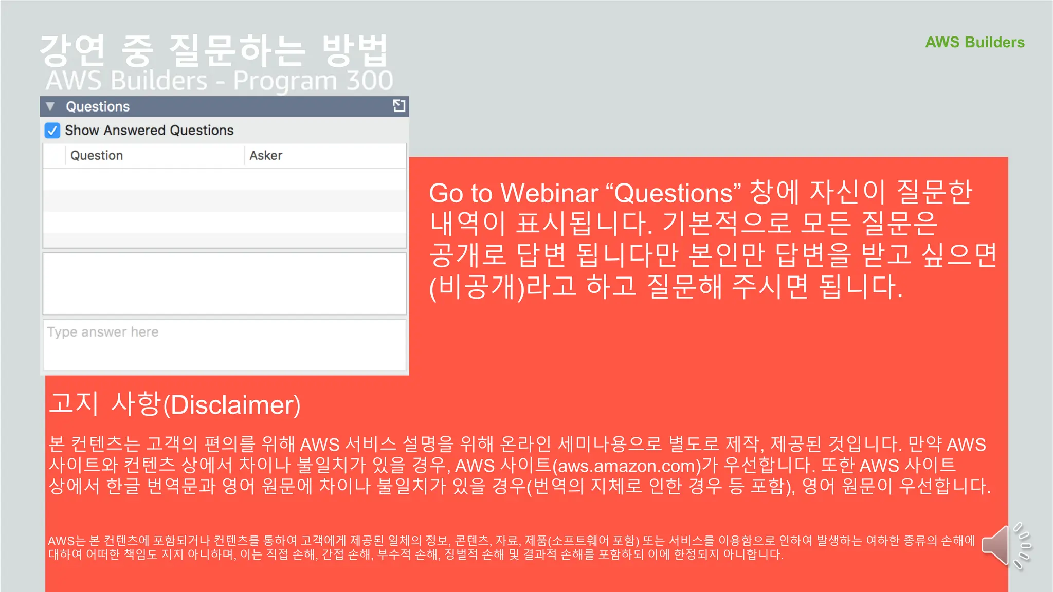 본 컨텐츠는 고객의 편의를 위해 AWS 서비스 설명을 위해 온라인 세미나용으로 별도로 제작, 제공된 것입니다. 만약 AWS