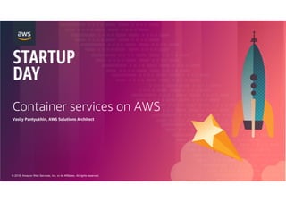 The document discusses container services on AWS, including Amazon ECS, AWS Fargate, and Amazon EKS. It provides an overview of each service's key features such as scheduling and orchestration, scaling, networking, and resource allocation. It also compares the services and provides guidance on which may be most suitable for different use cases. ECS is best for applications requiring more control over infrastructure, while Fargate removes the need to manage EC2 instances. EKS provides a native Kubernetes experience on AWS.