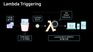 This document discusses building and deploying machine learning models using Amazon Web Services (AWS) Lambda and containers. It describes downloading dependencies from S3, building a Lambda deployment package in a Docker container, and updating a Lambda function to use the new package. Code snippets show setting up a Python virtual environment, installing TensorFlow and other libraries, zipping the environment contents into a deployment package, and uploading/deploying the package to Lambda via the AWS API.