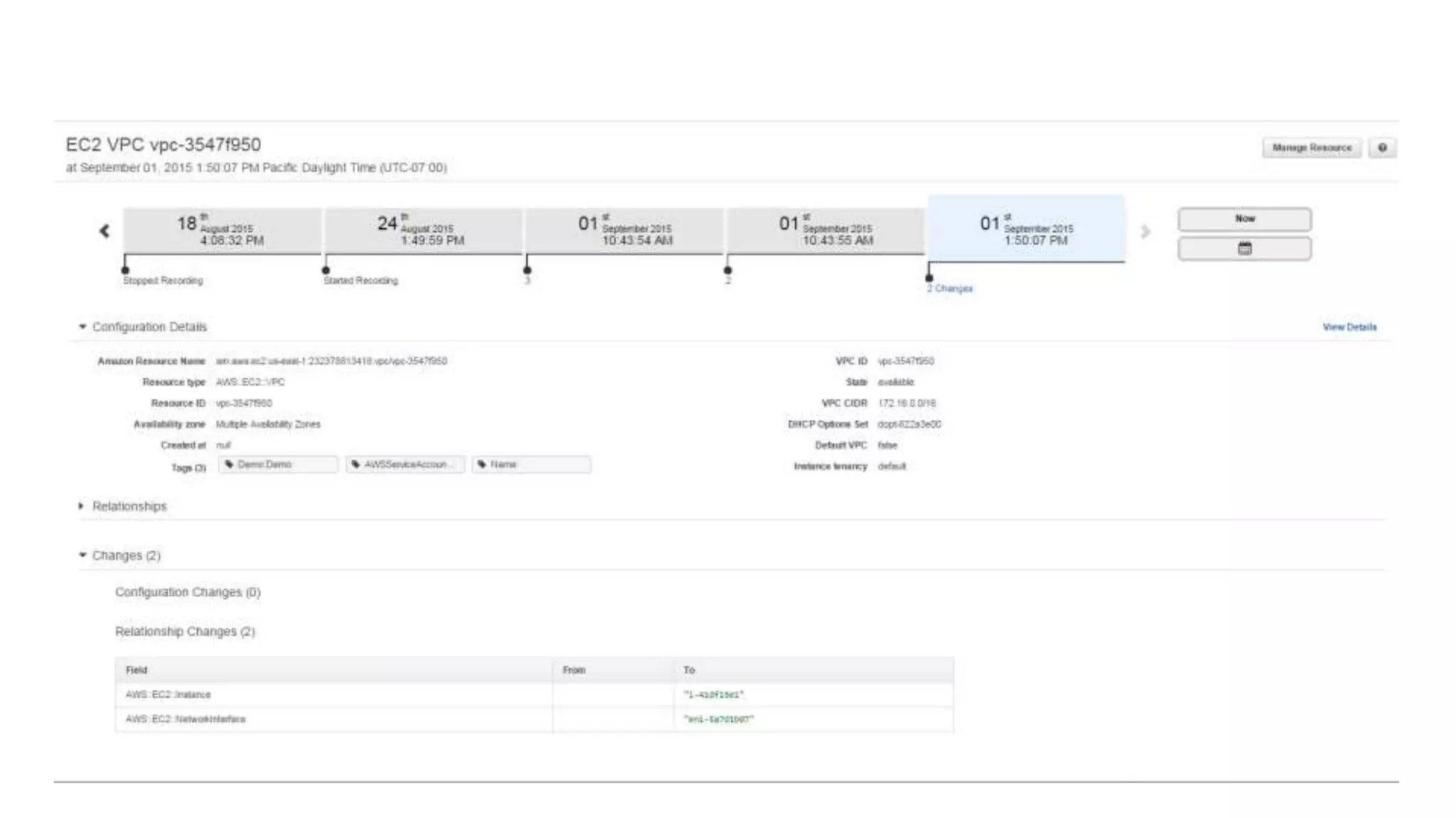AWS Config capabilities for tracking resources and configuration changes.