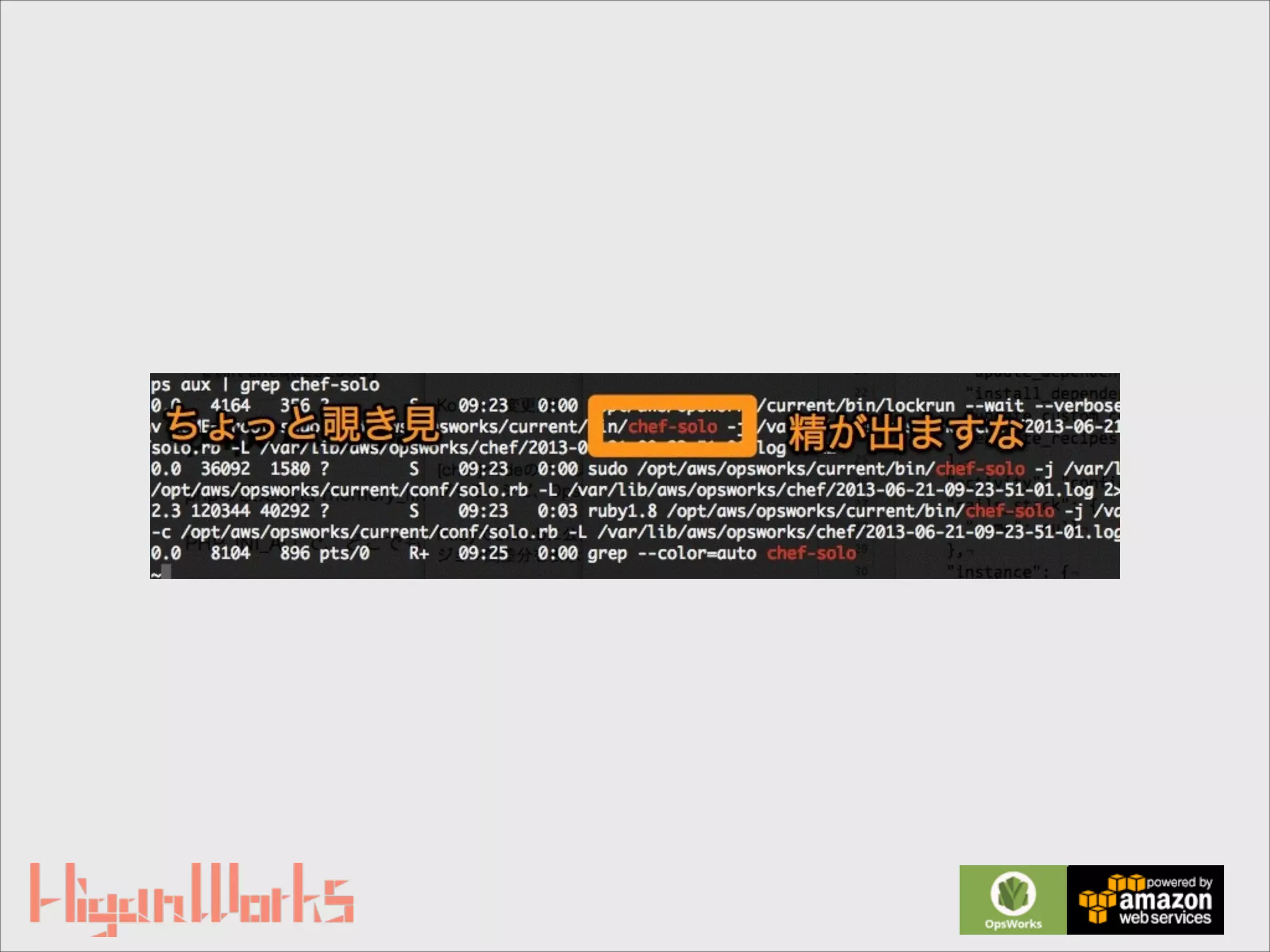 "sample_stack"! },! "layers": {! "db-master": {! "id": "e554fc61-25f0-4cde-ab21-0fb890f586b6",! "name": "MySQL Master",! "instances": {! "db-master1": {! "public_dns_name": "ec2-54-250-66-243.xxx",! "ip": "54.250.66.243",! "private_ip": "10.154.17.254",! "private_dns_name": "ip-10-154-17-254.xxx"! }! }! }! "mysql": {! "server_root_password": "root_password"! }! } ※一部抜粋