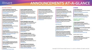 The document provides an overview of announcements from Amazon Web Services' annual re:Invent conference in December 2019. Key details include: