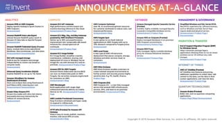 - Announcements covered improving the developer experience, compute, storage, AI/ML, databases/analytics, networking, security, and extending AWS beyond regions.