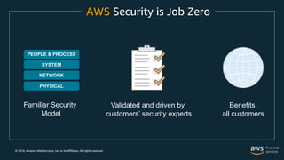 The document outlines the security and compliance features of Amazon Web Services (AWS), emphasizing the importance of customer-driven security models and the capabilities offered to businesses for secure cloud operations. It details various AWS services and tools that ensure privacy, data protection, and compliance with security standards. The document also highlights examples of organizations successfully leveraging AWS for enhanced security and operational efficiency.