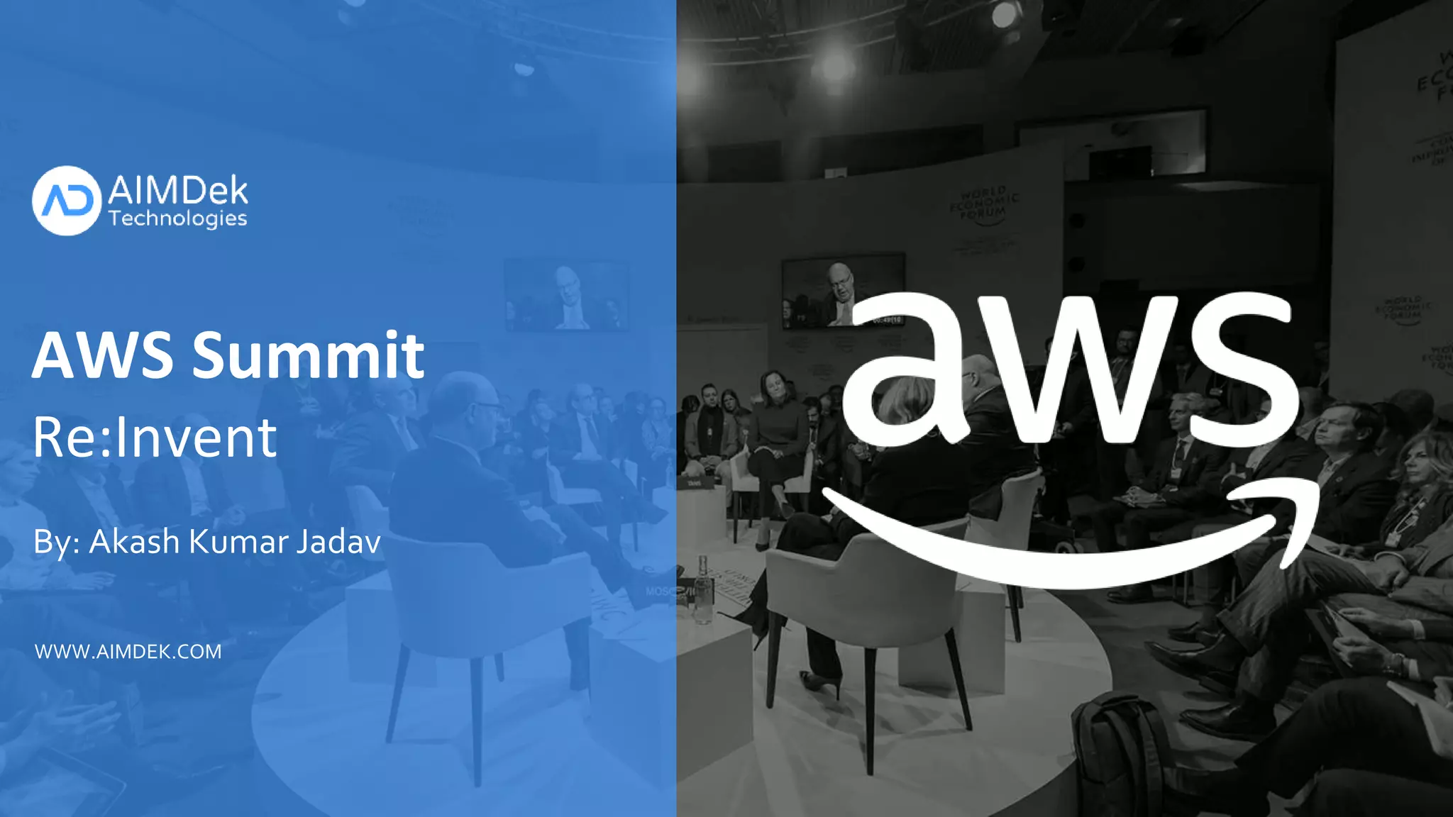 The document outlines an AWS Summit agenda covering digital transformation with cloud services, security services, and AWS media services. It discusses how AWS started with its own data centers but faced challenges with underutilized assets and slow deployments. It then describes various AWS compute, storage, database, and security services. Specifically, it outlines IAM for access management, CloudTrail for monitoring account activity, and several media services for video preparation, processing, and delivery. Diagrams illustrate example media workflows. The presentation aims to help organizations innovate with AWS cloud services.