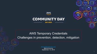 The document discusses challenges related to AWS temporary credentials, focusing on attack scenarios such as privilege escalation and data exfiltration following a compromised access key. It outlines the defender's perspective on detection, investigation, and remediation strategies, highlighting difficulties in managing and mitigating attacks using temporary tokens. The document emphasizes the need for improved monitoring, proactive measures, and updated incident response protocols for temporary credential management.