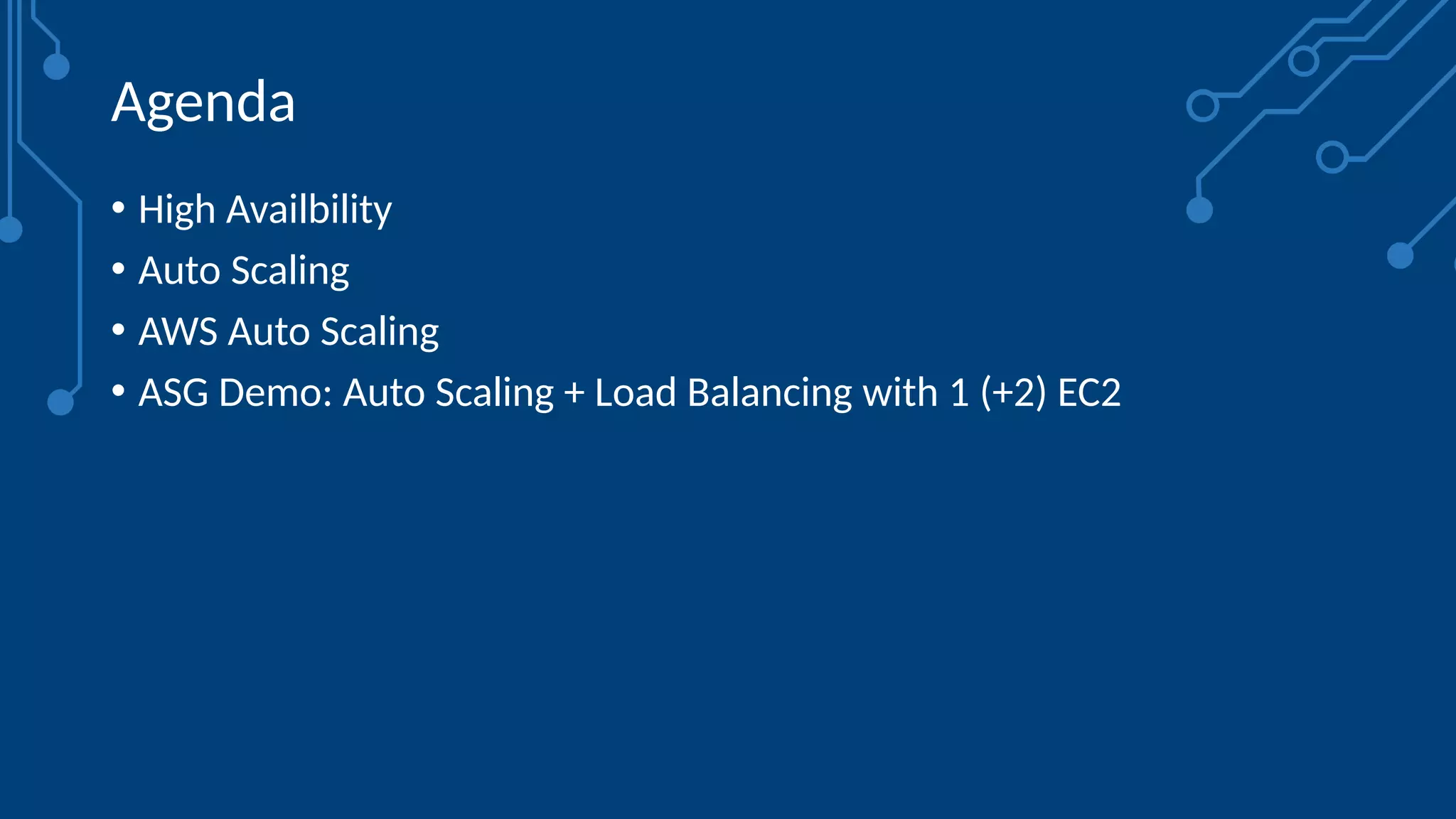 This document provides an overview of auto scaling on AWS. It discusses high availability, auto scaling components like launch configurations and auto scaling groups, and demonstrates setting up an auto scaling group with a load balancer and scaling policies to handle increased load and instance failures. A scenario is presented where an initial EC2 instance is load balanced and auto scaling is configured to scale up to 3 instances under load and replace instances if terminated.