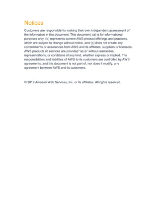 The document provides an overview of Amazon Web Services (AWS), a cloud computing platform offering over 140 services including computing, storage, databases, analytics, networking, mobile, developer tools, management tools, IoT, security, and enterprise applications. Customers can access these on-demand services with pay-as-you-go pricing to replace upfront capital expenses with low variable costs that scale with usage. Some key benefits of AWS include eliminating the need to forecast capacity needs, increasing development speed and organizational agility, and reducing costs by leveraging AWS's economies of scale rather than maintaining their own data centers.