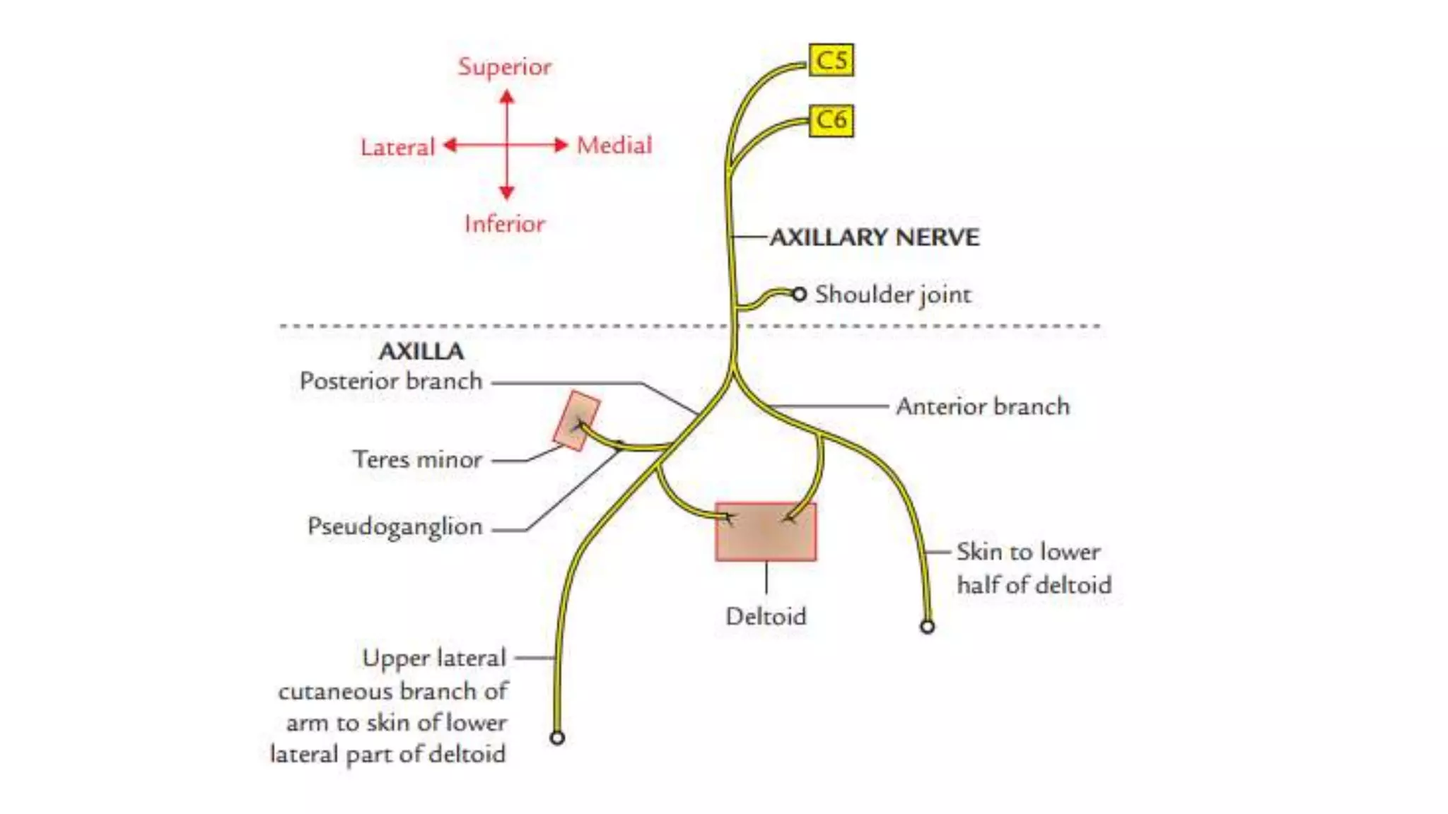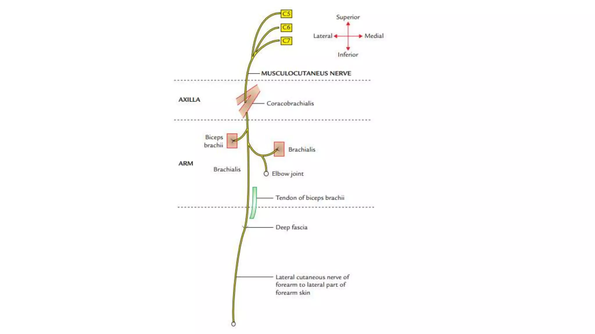 • It provides sensory innervation to the skin on the lateral surface of the arm up to the elbow.