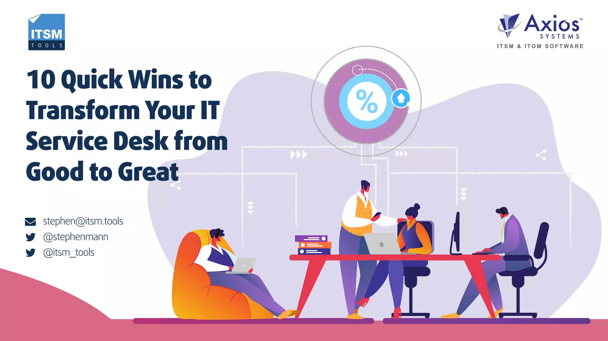 The document outlines ten quick wins for transforming IT service desks, emphasizing self-service, knowledge management, and automation as key improvement areas. It identifies common challenges like high support volumes, budget constraints, and employee expectations, recommending actionable strategies to address these issues. The key takeaways highlight the importance of focusing on employee needs, organizational change management, and leveraging existing technologies for better outcomes.