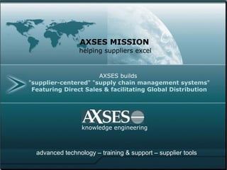 The document summarizes the services of AXSES, a company that builds technology platforms for marketing Caribbean tourism. It discusses AXSES' travel platform which integrates hotels, activities, flights and more to facilitate direct bookings. It also describes their theme-based marketing websites, dynamic packaging tools, and analytics that provide suppliers with direct sales opportunities and control over their brands.