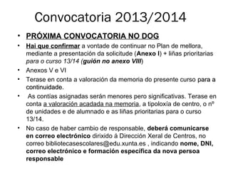 • Hai que confirmar a vontade de continuar no Plan de mellora,