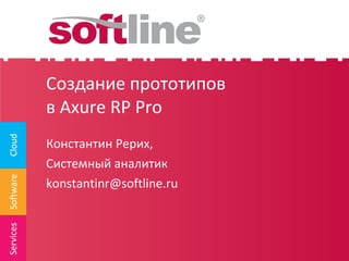Документ описывает создание прототипов интерфейсов с использованием Axure RP Pro, объясняя, что такое прототип и его важные функции для аналитиков, заказчиков и разработчиков. Основные выборы инструмента прототипирования направлены на простоту создания, интерактивность и возможность совместной работы, с сравнением различных инструментов. В заключение, обсуждаются этапы создания прототипов и рекомендации по использованию, а также ресурсы для дальнейшего изучения.