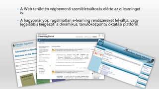 • A Webterületén végbemenő szemléletváltozás elérte az e‐learninget