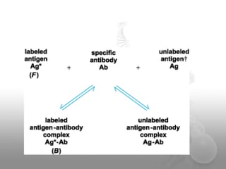 Radioimmunoassay (RIA) is a highly sensitive in vitro technique developed to measure antigen concentrations in samples, notably introduced for insulin detection in 1960. The method relies on competitive binding between radiolabeled and unlabeled antigens with specific antibodies, allowing precise quantification of hormones and other substances. While RIA is widely used for its specificity and sensitivity in various clinical applications, it also poses radiation hazards and requires specialized training and equipment.