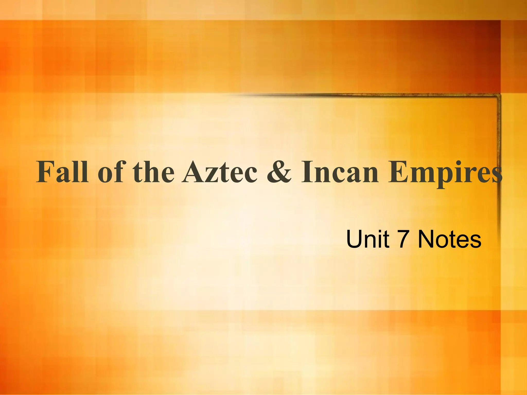 1) Hernan Cortes led a small Spanish force that used horses, guns, and disease to defeat the vast Aztec Empire in Mexico.