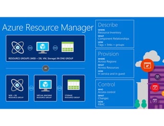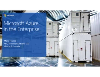 This document outlines an agenda for a presentation on Microsoft Azure in the enterprise. The agenda includes discussions of Microsoft's cloud strategy, an overview of Azure IaaS and PaaS offerings, Azure storage basics, Azure portals and APIs, Azure resource manager, Azure networking, security mechanisms, traffic management, cloud adoption methodology, Azure security center, and operational analytics. It also lists appendices on Azure stack, service fabric, DevOps, and how Azure is described by Gartner. The presentation aims to provide both a high-level overview and deeper dives into specific Azure services and capabilities.