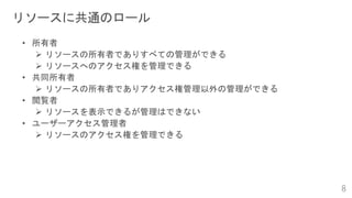 サービス管理者は、指定した Azure AD テナン トから、サブスクリプションの「共同管理者」 を選択することができる • 共同管理者は、共同管理者を追加することはで きない • 共同管理者はサービス管理者同様、サブスクリ プション内のリソースを管理できる。ただし、 Azure AD テナントで管理できるのは自身のテ ナントのみ