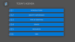 Jethro Seghers presented on Azure Active Directory. Azure AD is a comprehensive identity and access management cloud solution that combines directory services, identity governance, application access management, and a developer platform. It allows for single sign-on, self-service access, and synchronization of identities from on-premises directories to the cloud. Azure AD supports cloud identities stored directly in Azure, federated identities using AD FS, and pass-through authentication to keep identities on-premises while authenticating to Azure.