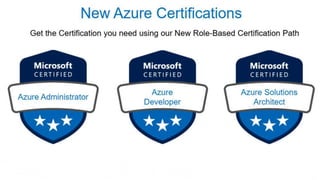 This document provides information about becoming an Azure administrator, including an overview of cloud computing and Microsoft Azure certifications. It discusses what cloud computing is, the benefits of cloud computing, Azure regions and datacenters, types of cloud services like SaaS, PaaS and IaaS, and how to upload data to the cloud using Azure Data Box. The document aims to help readers understand cloud concepts and get recognized with new role-based Azure certifications.