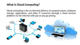 Cloud computing is the on-demand delivery of compute power, database