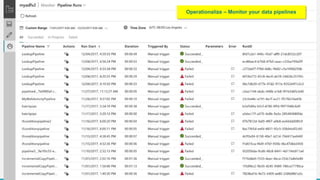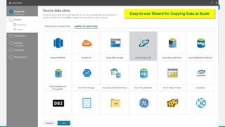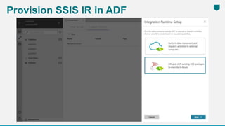 The document discusses Azure Data Factory and its capabilities for cloud-first data integration and transformation. ADF allows orchestrating data movement and transforming data at scale across hybrid and multi-cloud environments using a visual, code-free interface. It provides serverless scalability without infrastructure to manage along with capabilities for lifting and running SQL Server Integration Services packages in Azure.