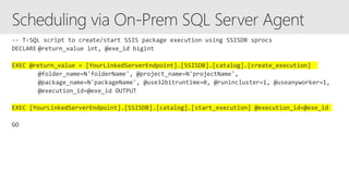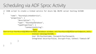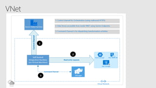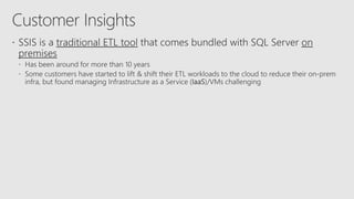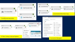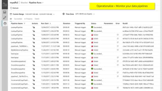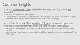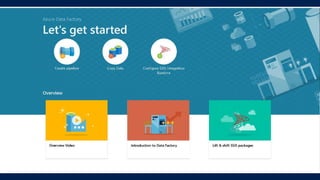 Azure Data Factory is a fully managed data integration service in the cloud. It provides a graphical user interface for building data pipelines without coding. Pipelines can orchestrate data movement and transformations across hybrid and multi-cloud environments. Azure Data Factory supports incremental loading, on-demand Spark, and lifting SQL Server Integration Services packages to the cloud.