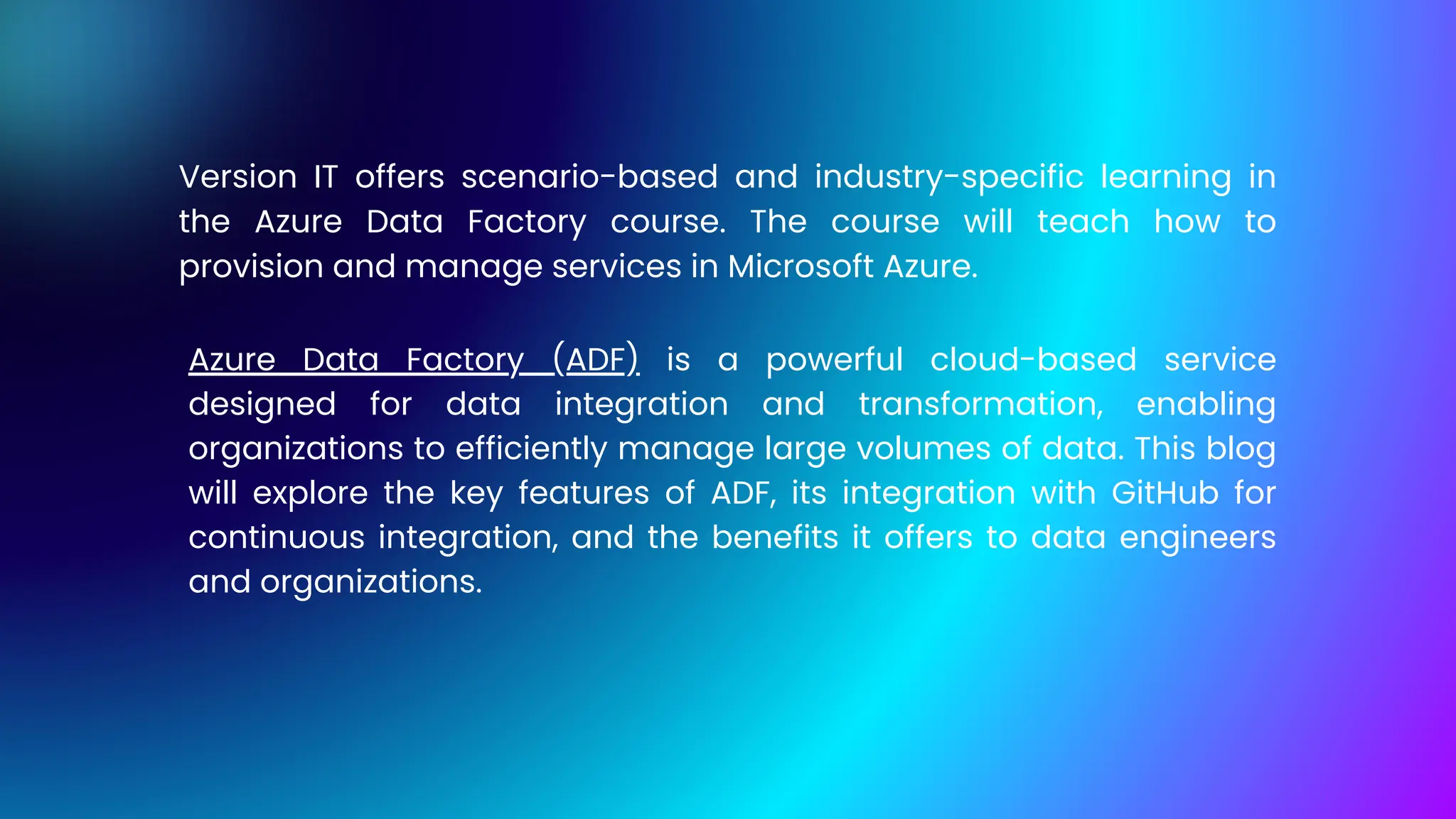 Azure Data Factory (ADF) is a cloud-based service designed for efficient data integration and transformation, ideal for handling large datasets. It offers features such as automated data encryption, integration with GitHub for collaboration, and a streamlined development process through CI/CD practices. Training in ADF can significantly improve career prospects for data engineers, especially as demand for skilled professionals rises.