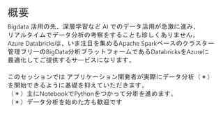 [ウェビナー] アプリケーション開発者のためのAzure Databricks入門 (2018年6月7日実施)