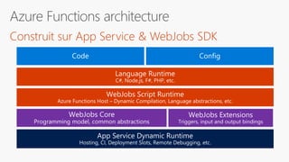 Azure Functions allow for event-driven, serverless code execution in multiple languages like C#, Node.js, and Python. Functions can be triggered by events from various Azure services and external sources. They provide automatic scaling based on demand and sub-second billing. Functions make it easy to compose cloud applications from loosely coupled services and integrate with other Azure services like Logic Apps, Storage, SQL Database, and more.