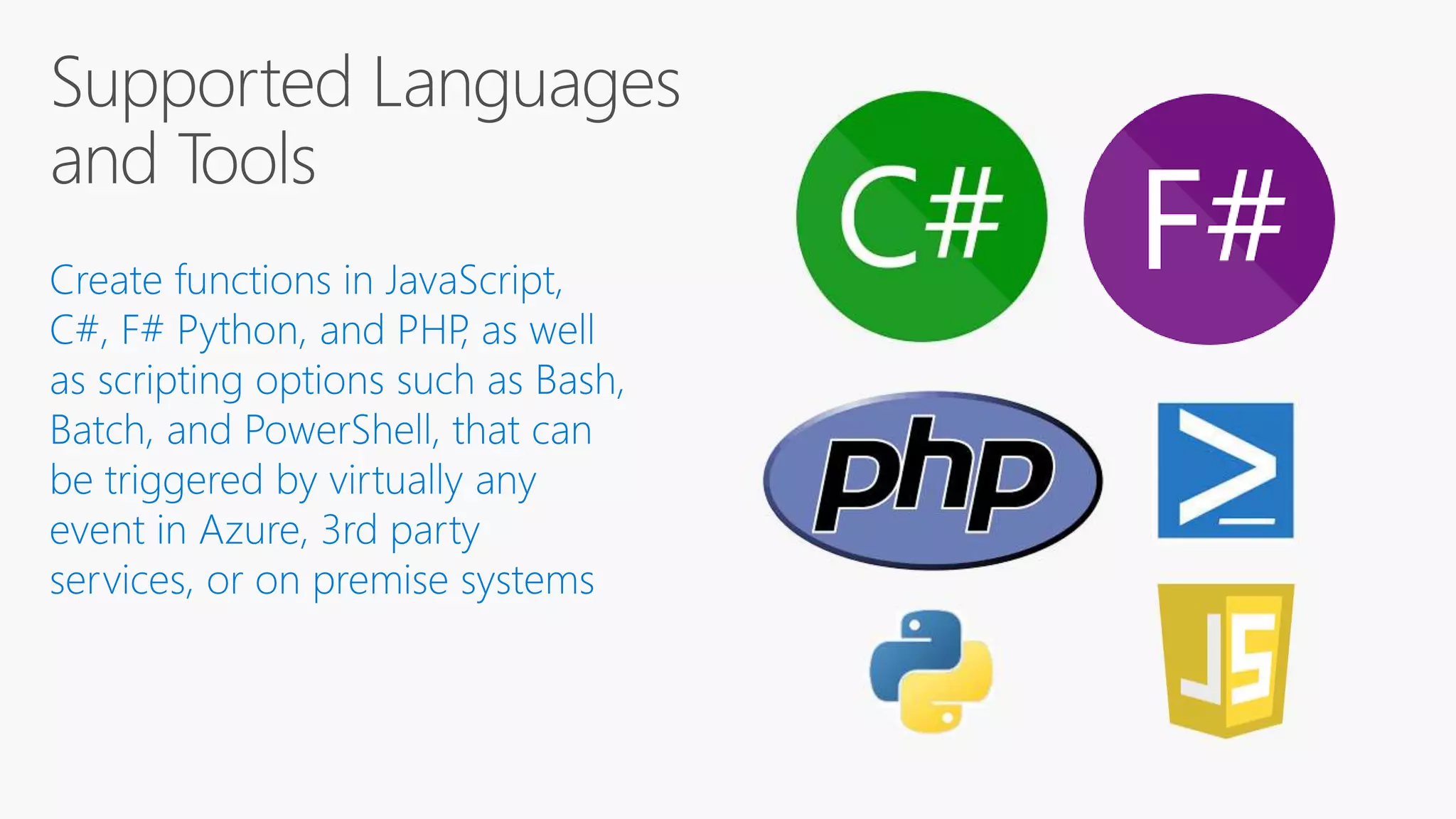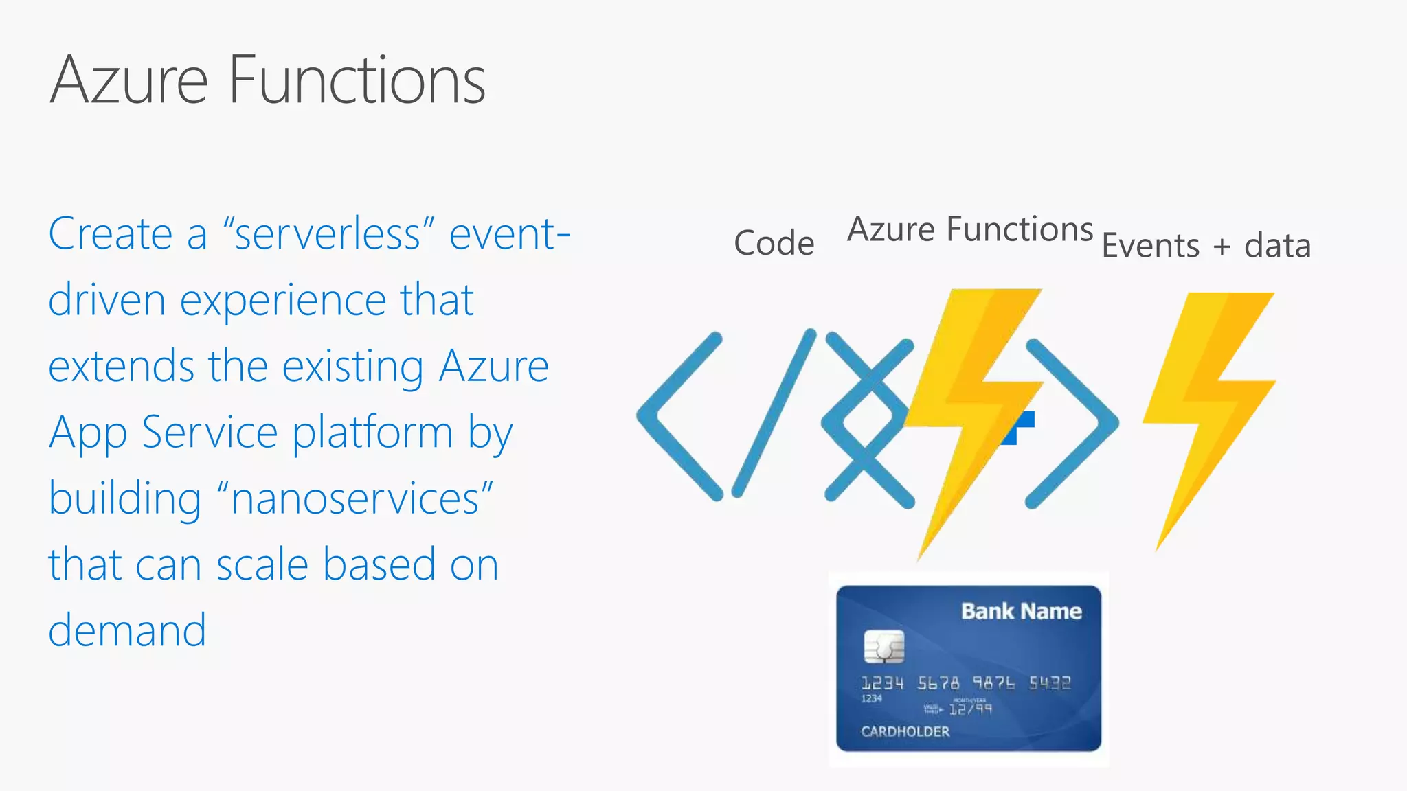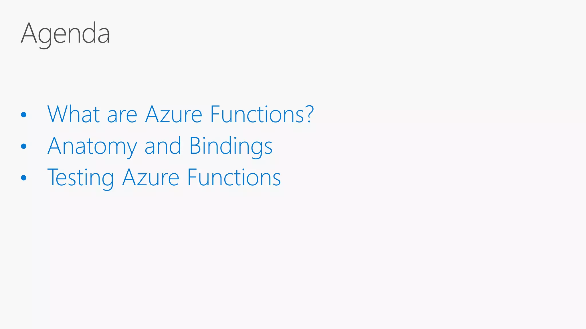 Azure Functions allow developers to write small pieces of code, or "functions", that can be run in the cloud and are triggered by events. Functions can be triggered by common data sources like Azure Blob storage, queues, and tables. Functions code can be written in C#, F#, Node.js, or Python and bindings define how functions connect to triggers and external data sources. Functions can be tested locally and deployed to Azure to be run on an event-driven schedule.