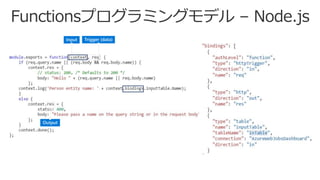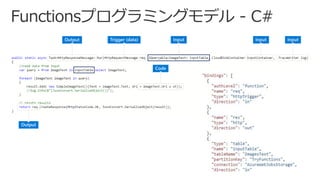 Azure Functions では、トリガーとバインドを使用して、Azure やその他のサービスで発生したイベントに応答するコードを記述