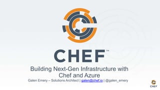 This document provides an overview of using Chef and Azure to build next-generation infrastructure. It discusses key Azure services, deploying a Chef server in Azure, integrating Chef with the Microsoft ecosystem, and migrating and automating workloads across on-premise, Azure, and hybrid environments. The lab guides users through deploying a Chef server in Azure, configuring it, and cloning a sample cookbook to manage infrastructure as code.