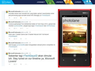 This document discusses using Azure Mobile Services for modern app development. It covers using Mobile Services to add a cloud backend to apps without server code, managing data through table scripts, supporting various authentication options from Microsoft, Facebook, Twitter and Google, and sending push notifications at scale through Notification Hubs. The presentation includes demos of getting started with data and configuring authentication. It encourages attendees to take MVA courses on mobile development and use the Azure free trial.