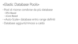 - Azure SQL Database which provides single database and elastic pool models for predictable or shared workloads.