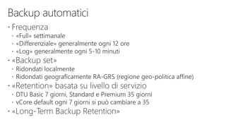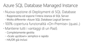 This document provides an overview of Azure SQL database and related services including: