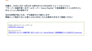 CEDEC2021 でのまとめ とPlayFab 参考リンク