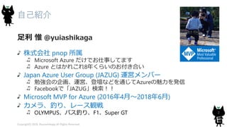 仮想マシ ン、ストレージ アカウント、SQL DBなど、種 類の異なるさまざまなリソースをグループ化 できる それぞれのリソースは、1 つのリソー ス グループにのみ存在 別リージョンのリソースも同一のグ ループで管理可能 リソースグループ単位で削除可能 Copyright© 2018, @yuiashikaga All Rights Reserved.
