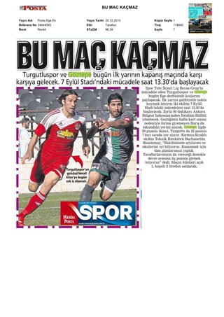 GÖZTEPE, TURGUTLU DEPLASMANINDA