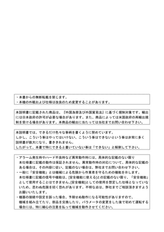 される場合には、機械メーカにご相談いただくとともに、必要に応じて下表に掲載された説明書の最新版を入手して