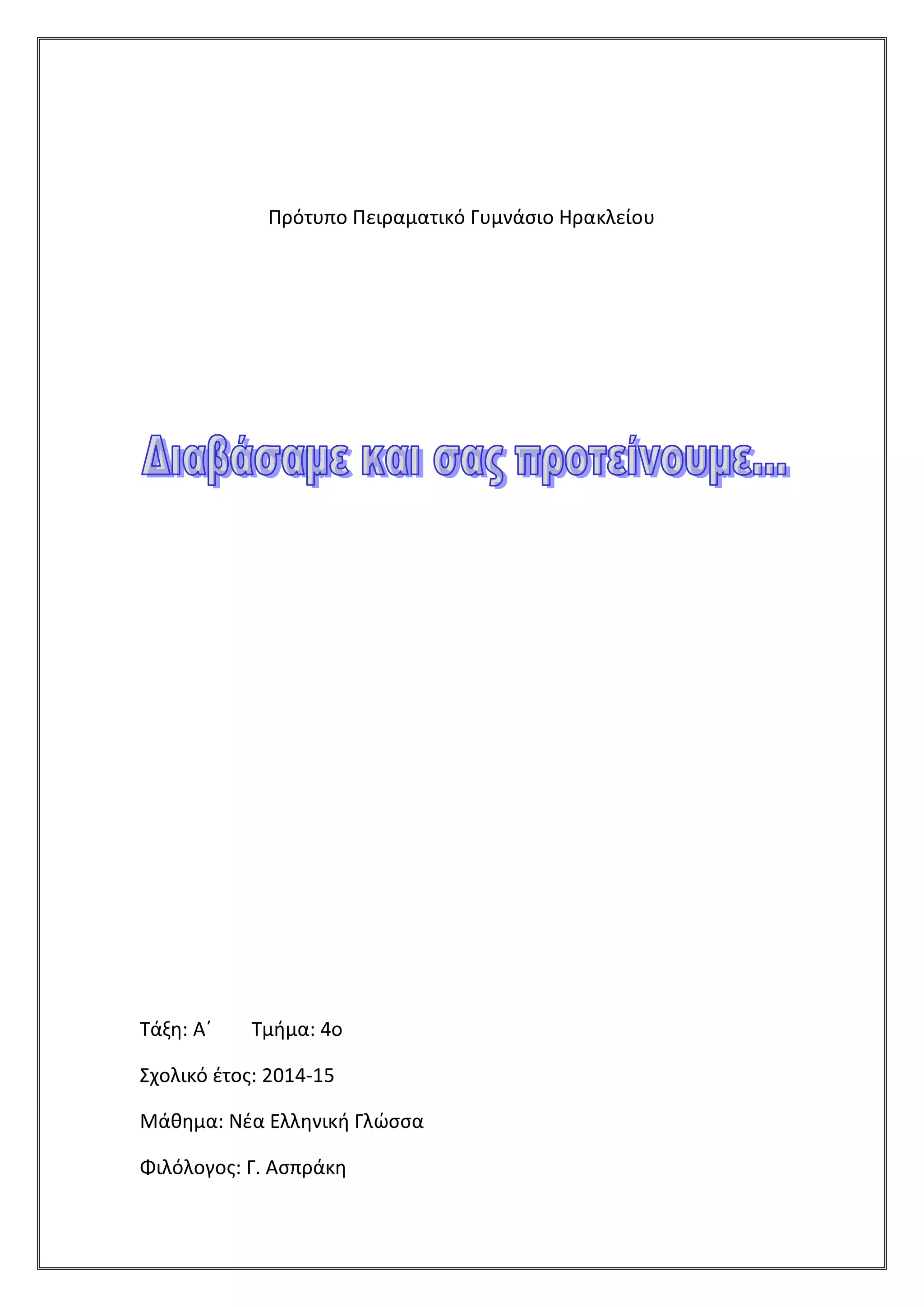 Μάθημα: Νέα Ελληνική Γλώσσα