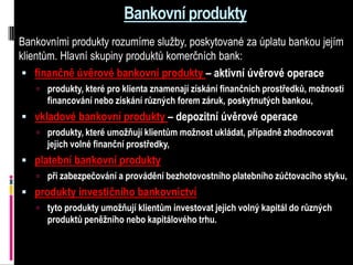 Bankovními produktyrozumíme služby, poskytované za úplatu bankou jejím