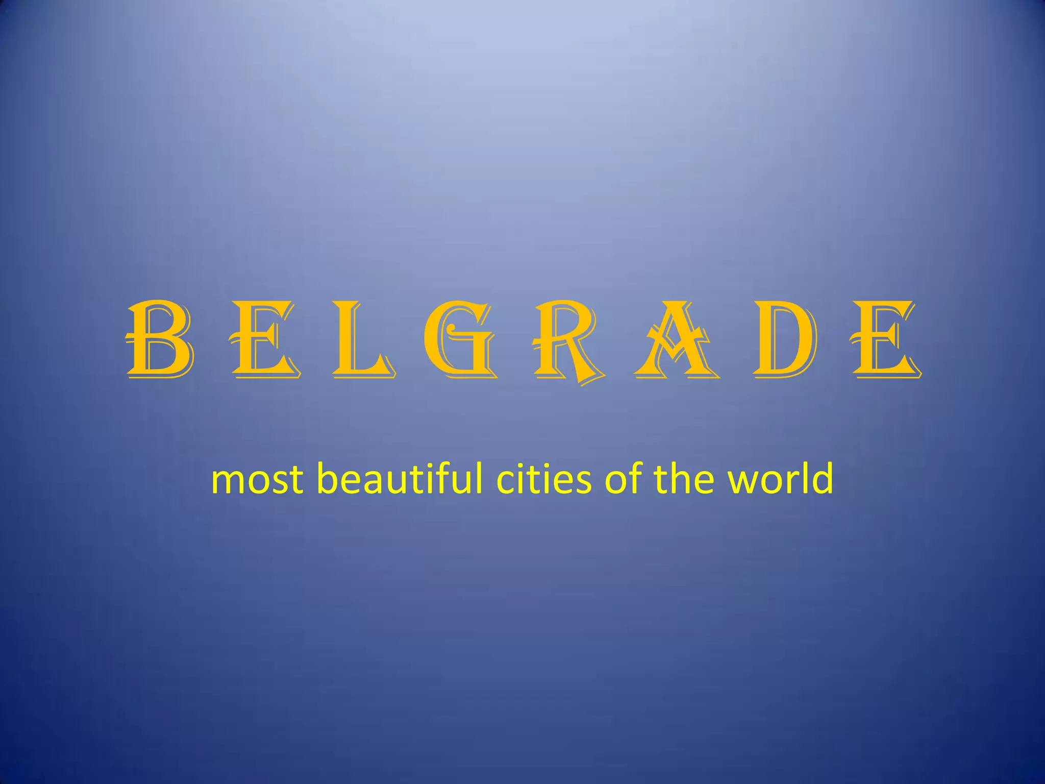Belgrade is one of the most beautiful cities in the world. It has a long history and culture with architecture from various periods. The document provides little other information about Belgrade beyond stating it is one of the most beautiful cities in the world.