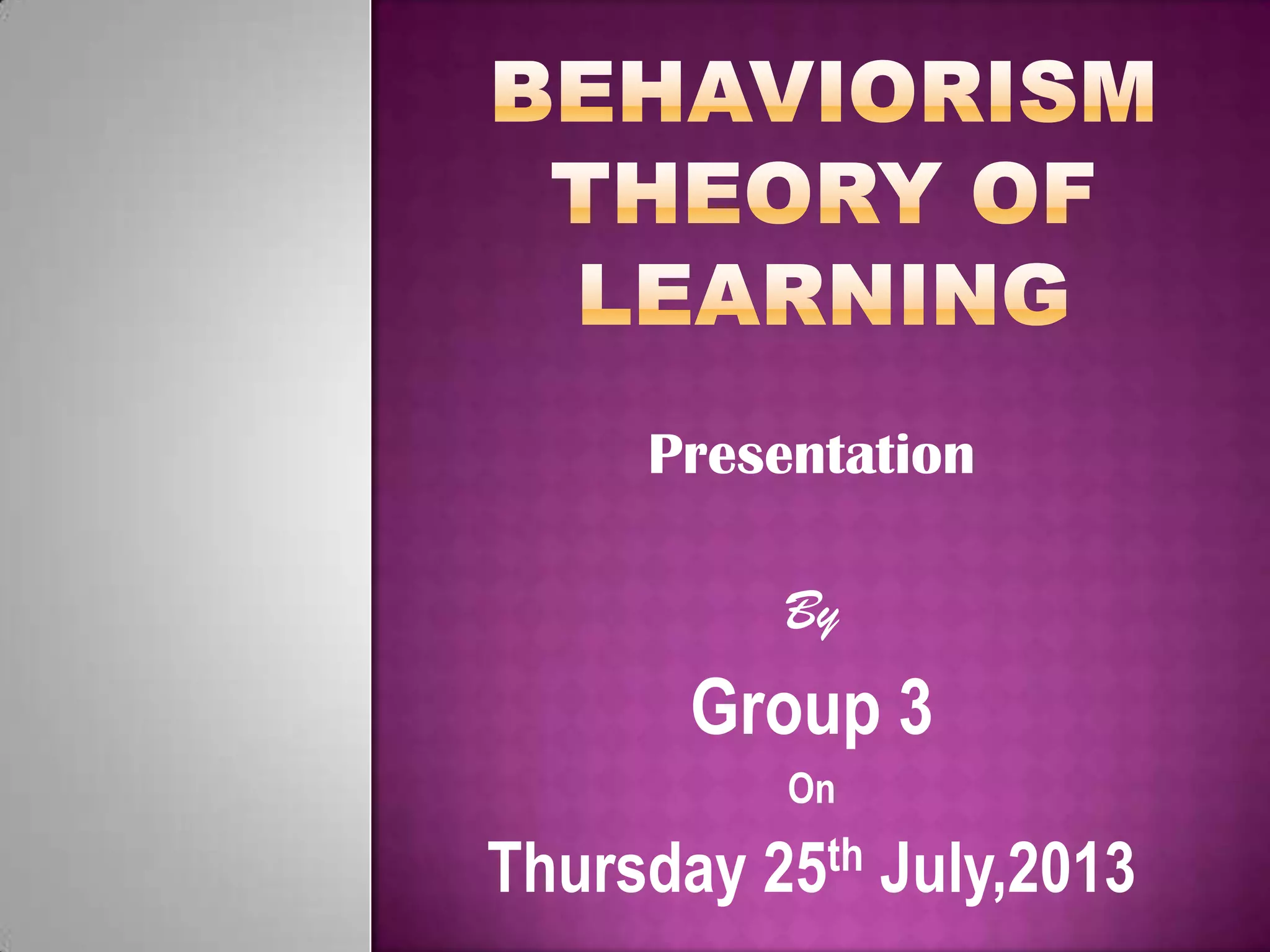 Group 3 presented on behaviorism on July 25th, 2013. Behaviorism is a theory that learning occurs through connections between stimuli and responses, and behavior can be explained through observable events rather than internal mental states. Key aspects of behaviorism include operant conditioning proposed by B.F. Skinner, which involves reinforcing desired behaviors through consequences to increase or decrease the likelihood of those behaviors reoccurring. Behaviorists view learning as a process of habit formation shaped by reinforcement or punishment from the environment.