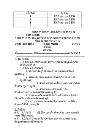 B silm mint may ton ครั้งที่ 2 1. แผนการจัด การเรีย นรู้ภ าษาอัง กฤษเพื่อ การสื่อ สารตาม