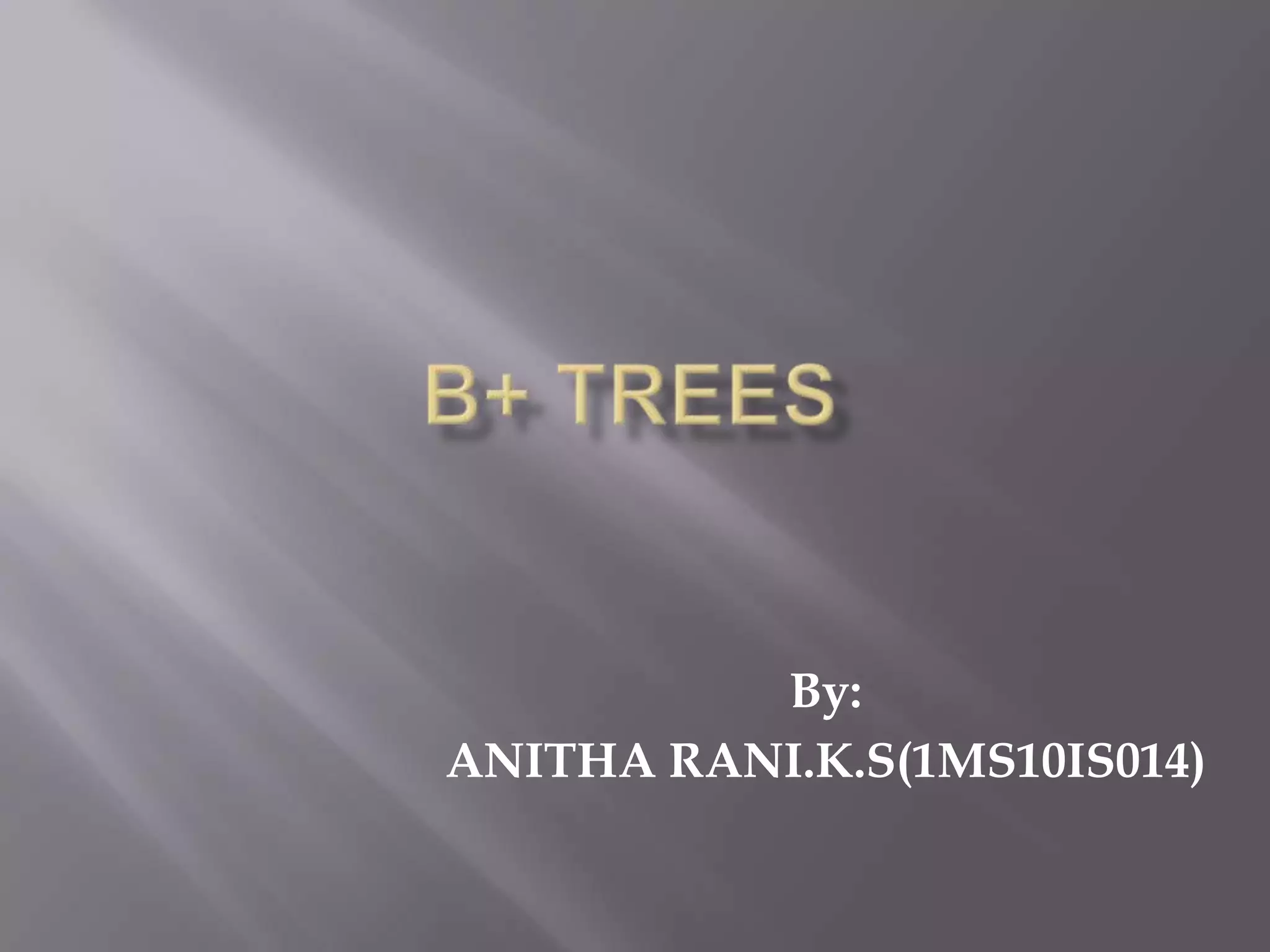 The document discusses B+ trees, which are self-balancing search trees used to index large blocks of data. It describes the basic structure of B+ trees, including leaf nodes containing data entries and non-leaf nodes containing index entries that point to child nodes. It also covers common operations like searching, insertion, and deletion in B+ trees and how these operations may involve splitting or merging nodes to maintain the tree's balance.