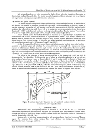 1) The document discusses the effect of replacing soil with more competent granular fill materials like mixtures of 6mm metal and sand.