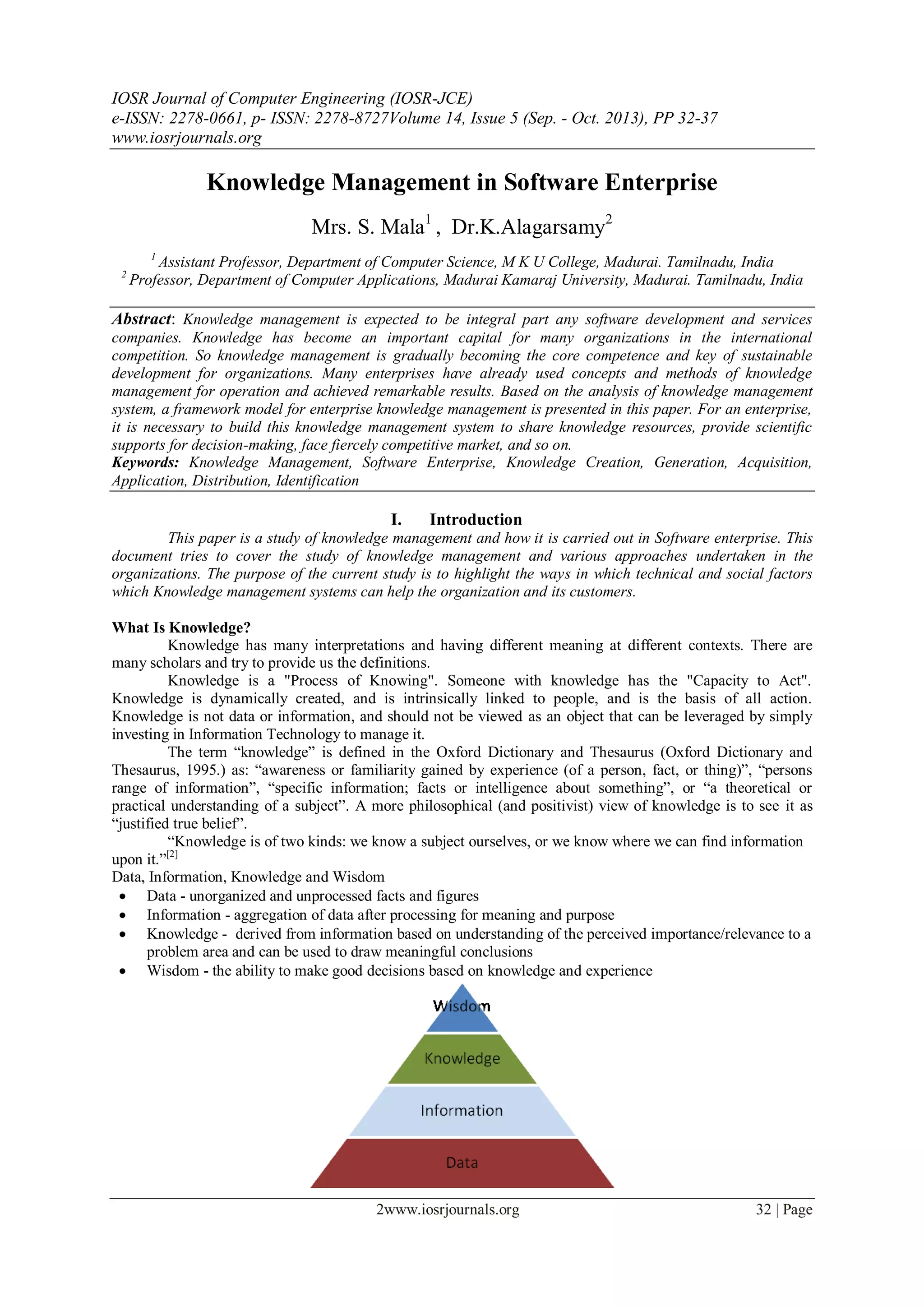 This document discusses knowledge management in software enterprises. It begins by defining key terms like data, information, knowledge, tacit knowledge and explicit knowledge. It then discusses how knowledge management is important for software engineering processes. Effective knowledge management can streamline processes and improve quality. The document also examines different approaches to knowledge management, like plan-based versus agile methods. Finally, it presents a framework for knowledge management in enterprises, including knowledge creation, acquisition, organization, distribution, and application to create business value.